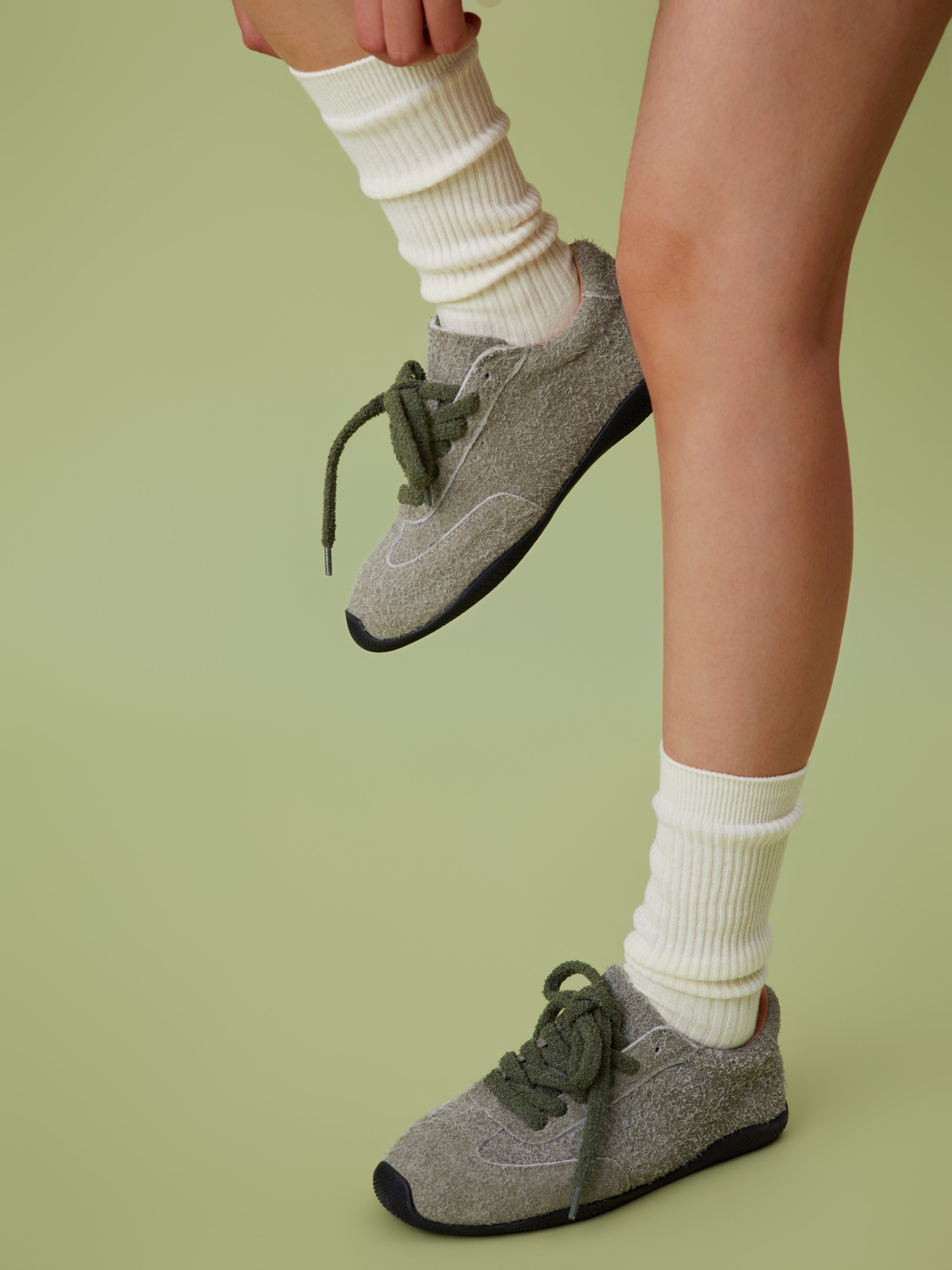 Oversized Lacing: Thick, moss-green woven laces add a bold pop of color and a contemporary "chunky" design element.
