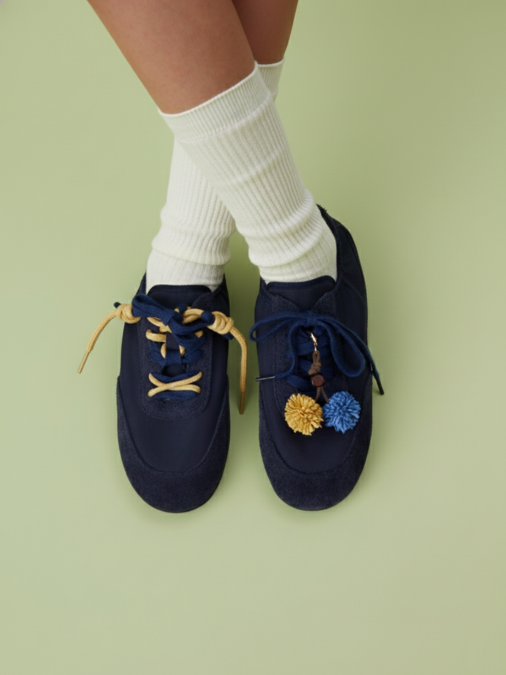 Coordinated Lacing: Outfitted with flat, tonal navy laces that maintain the shoe’s minimalist, uniform appearance.