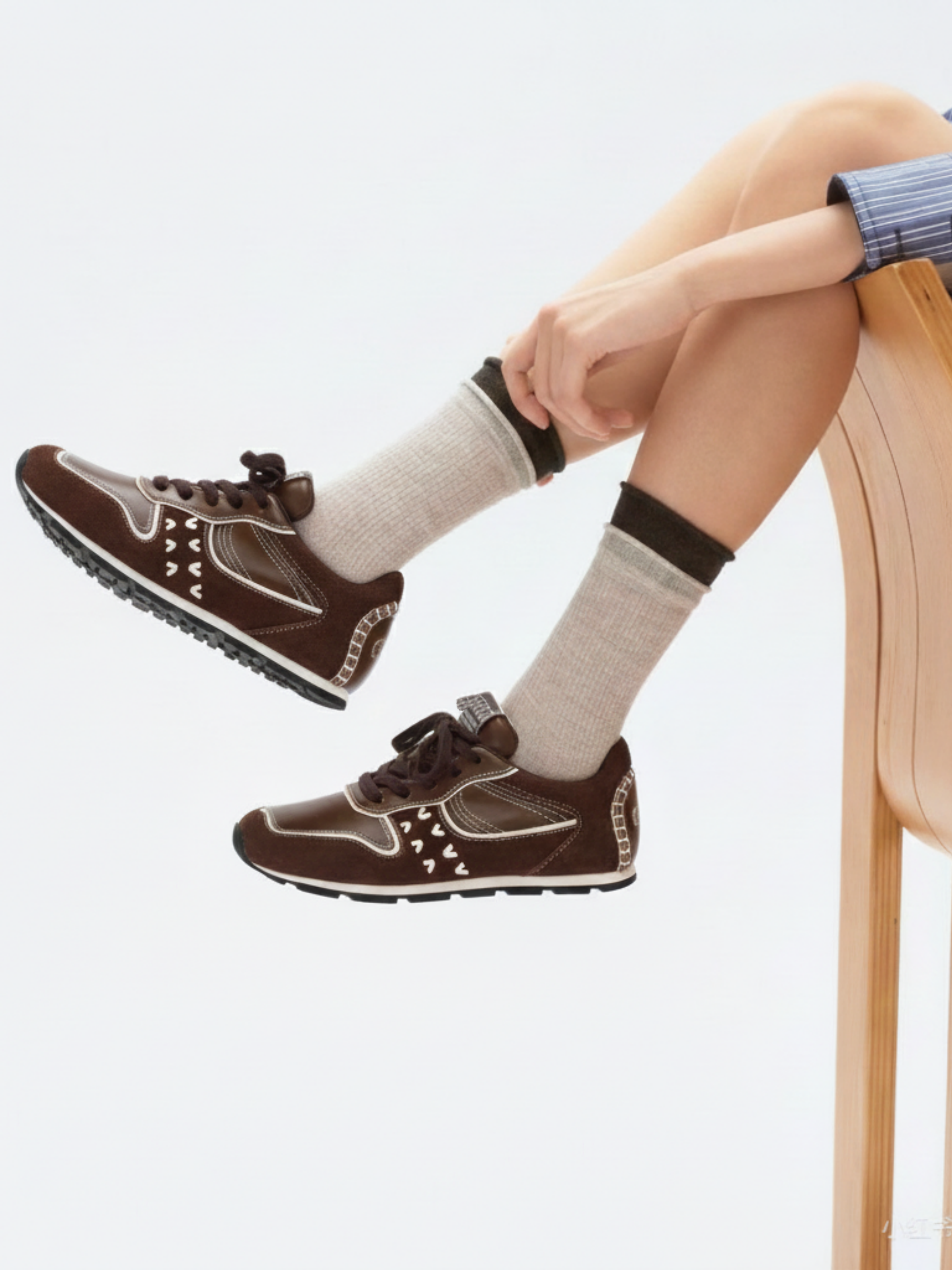 The Dual Stride Women‘s Retro Brown Suede Sneakers